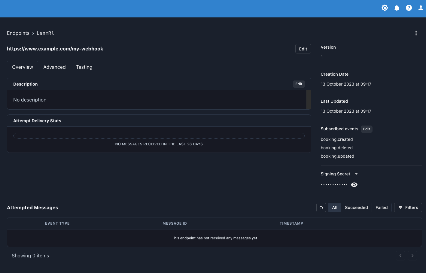 Now that you have your endpoint created. You can test it, view message attempts, as well as configure a rate limit.